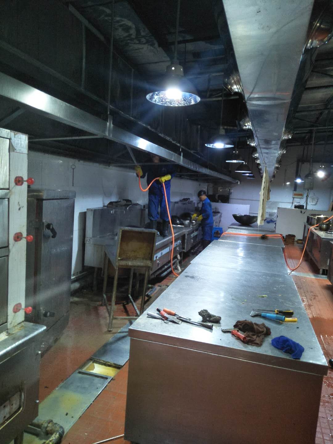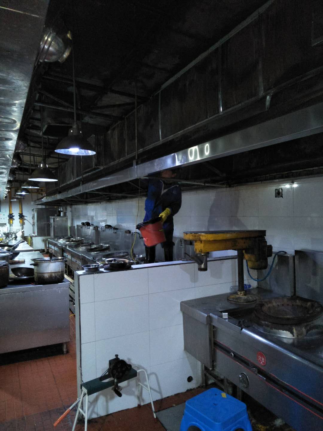 煙道是賓館、酒樓廚房的基礎設施,極易藏污納垢,是清理的死角。同時煙道是消防、衛(wèi)生、防疫部門檢查的重點區(qū)域.煙道、煙罩若不經(jīng)常清洗,積油越積越多,順著煙罩自然倒流,不僅影響飯菜質(zhì)量,而且還有損酒店信譽。同時,煙道中易寄生老鼠、蟑螂,不符合國家衛(wèi)生標準.油膩膠狀物長期扒附在金屬表面,還會腐蝕金屬材料,縮短煙道使用壽命。由于酒店食堂廚房排煙罩因長期積油,煙道、煙罩常年處于高溫工作環(huán)境,油煙氣化形成積油、積炭或油膩的膠狀物。很容易引起火災。使用專用的煙道、煙罩清潔劑,對煙道金屬材料清潔后,能在材料表面附著一層保護膜.在攝氏80度時,自動散發(fā)二氧化碳阻止燃燒.徹底解決客戶的后顧之憂。