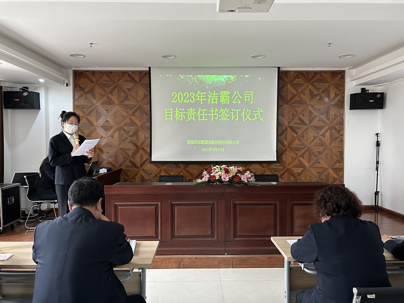 為進一步提升目標責任主體考核,壓實目標責任,強化履職擔當,3月24日下午,晉城市潔霸清潔服務(wù)股份有限公司2023年目標責任書簽訂儀式在公司黨群活動中心舉行。公司管理層、各單位、部門經(jīng)理、主管及文員參加會議。