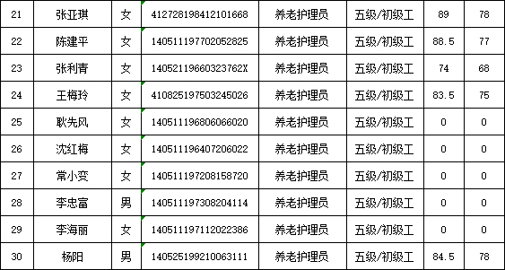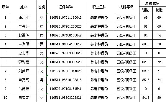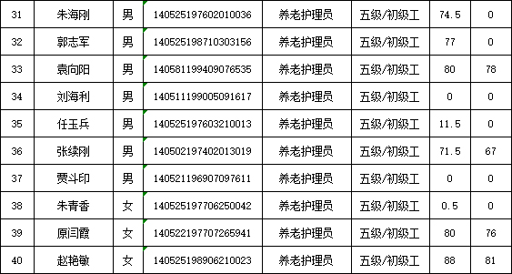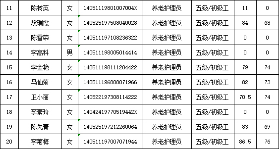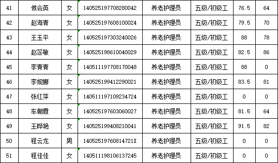 山西潔霸清潔服務(wù)集團股份有限公司職業(yè)技能等級認(rèn)定中心2026年1月22日第1批養(yǎng)老護理員初級認(rèn)定人員成績公示